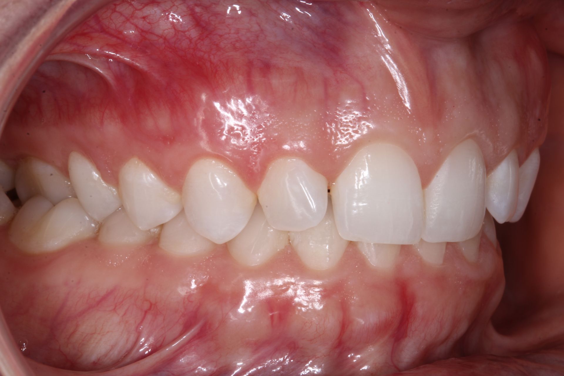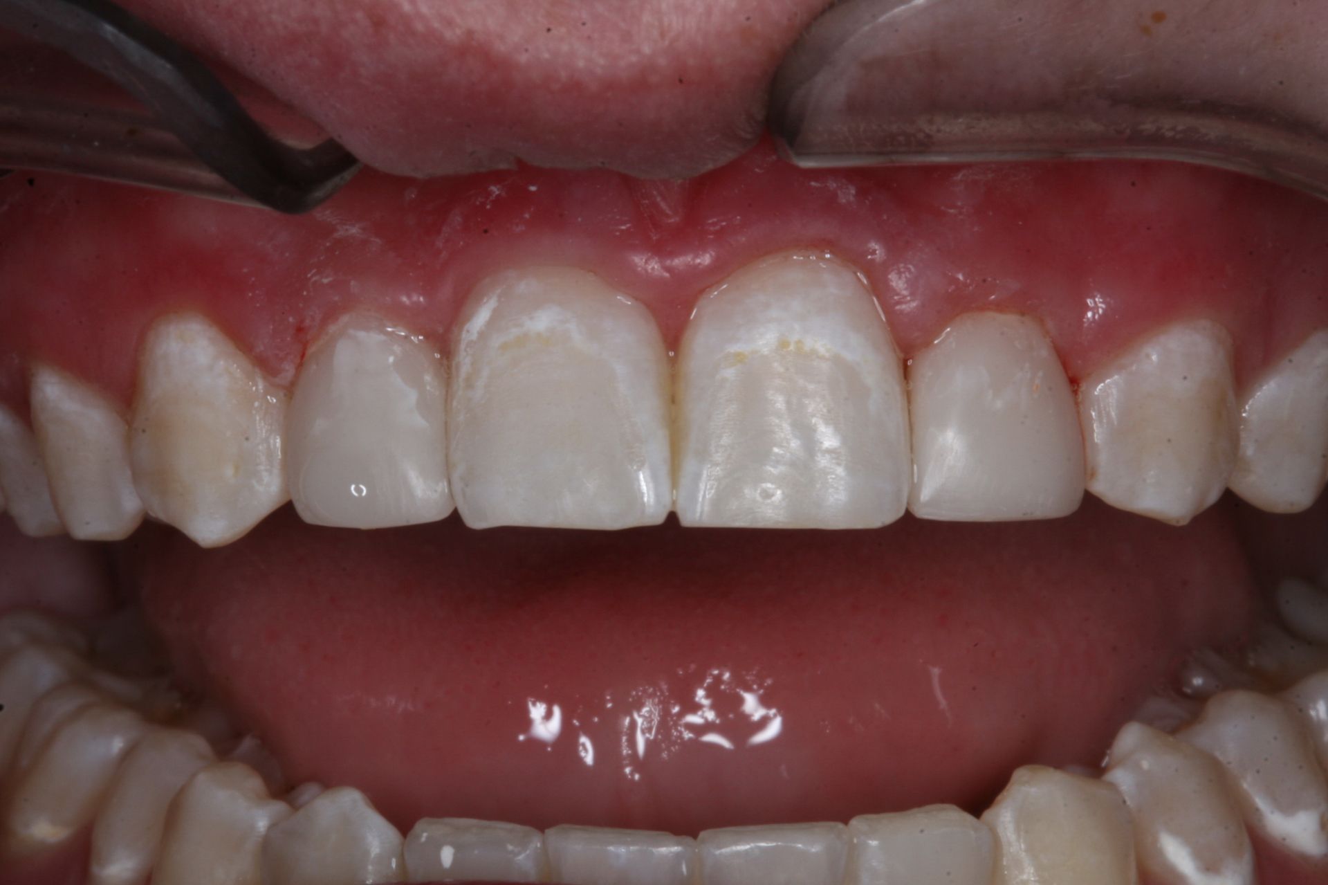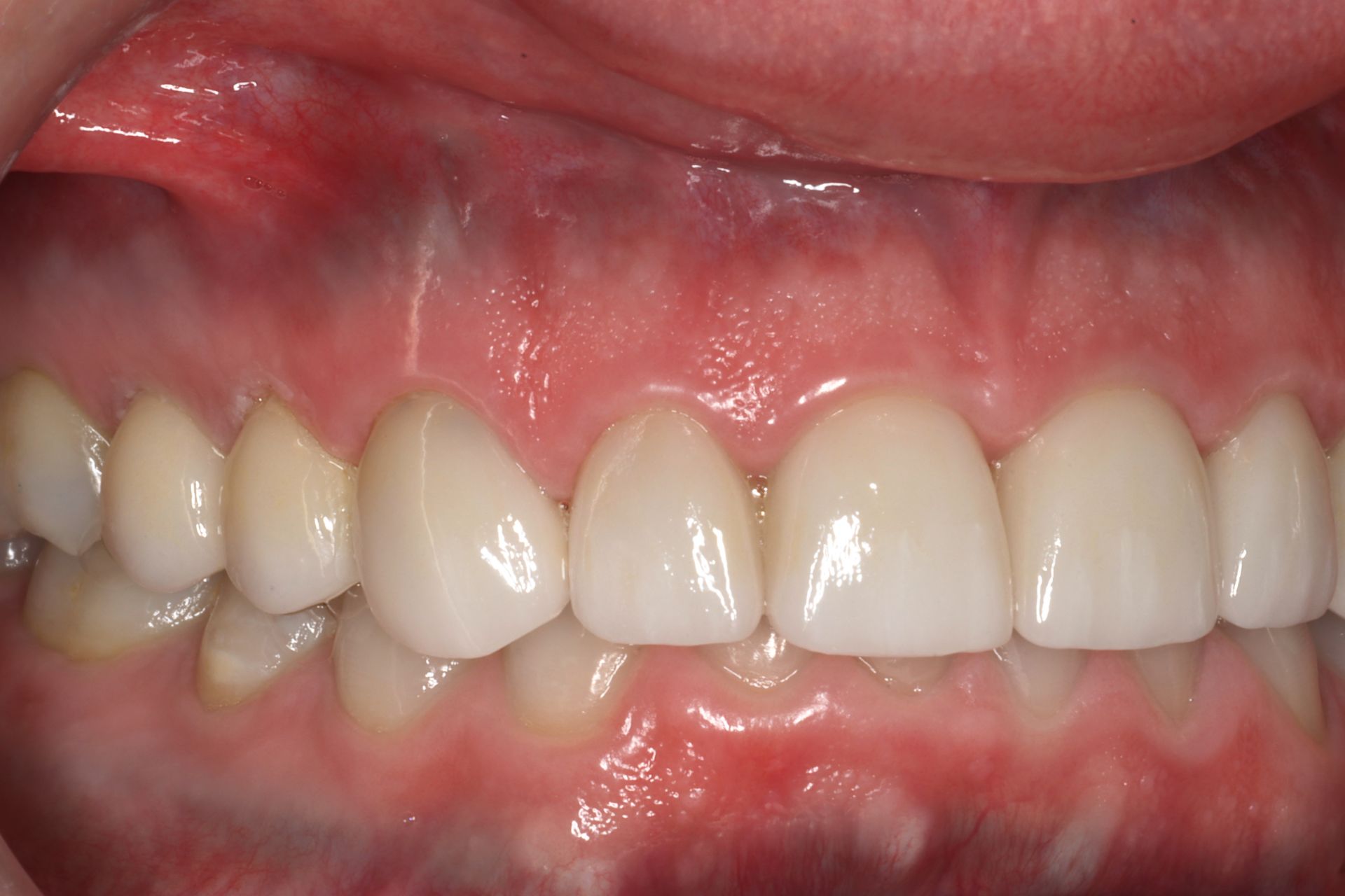 This patient was complaining of sensitivity to cold and notches in her teeth that showed when she smiled and collected food when she ate. Conservative resin bonding was matched to her tooth shade to add back the missing tooth structure and protects against future tooth erosion.